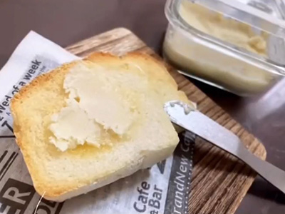 初級 お米で発酵なしパン を習ったら プレゼントレシピとしてついてくる ヴィーガンバターを中に包みます! レンチンして食べるとヴィーガンバターがとろけだし、ふわふわなお米パンと最高のハーモニーでしょう。
