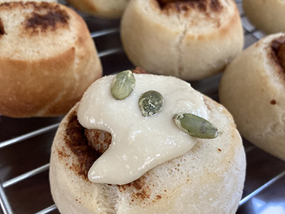 甘いパンはお好き? お米生地だけど、 甘い香りのシナモンに合うよう調節しております