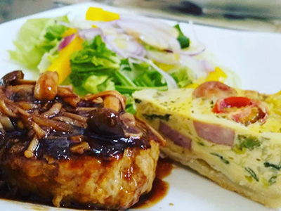 キッシュの皮から手作りします。簡単なのに本格的な味。ふわふわのジューシーハンバーグの作り方も伝授します。