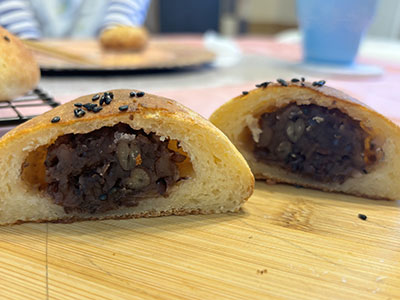 優しい甘さの発酵あんこ 発酵あんことマジックをかけたふわふわなお米パンで包みます。