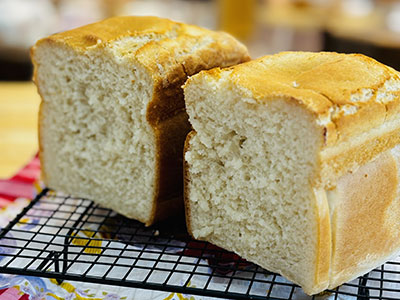 初回に習うお米で食パンはちょっと小さめよね。 食パンだから 市販に売られてるものと同じか大きさ 米、油、糖、塩、水で作りましょう!